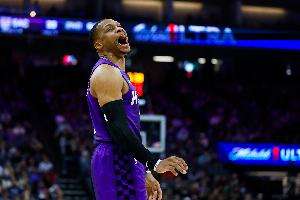 据统计,这是威少生涯第540次两双,超越保罗(539次),上升至历史后卫第二多,仅次于斯托克顿(714次)。