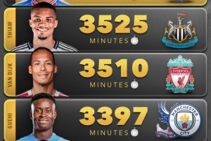 3、范戴克(利物浦):3510分钟