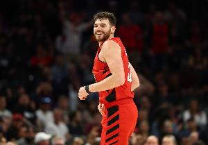 上半场,开拓者中锋克林根稳定发挥,出场15分钟7投4中,罚球2中2拿到10分10篮板2助攻,正负值+18。