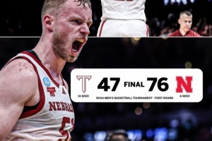 这是内布拉斯加大学在NCAA疯三的首胜,此前他们八次首轮出局。