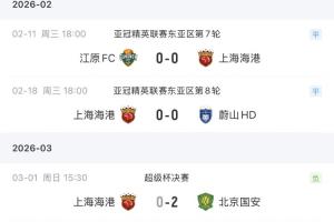 下一篇: 2026超级杯 上海海港0比2北京国安