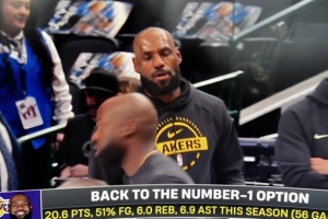 湖人媒体?????????晒出詹姆斯赛前热身直播画面,直播方配文:“重回球队头号选择(BACK TO THE NUMBER-1 OPTION)!“