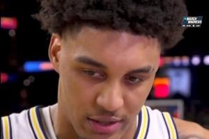 密歇根大学主力、热门秀伦德博格在半场休息时接受了采访。
