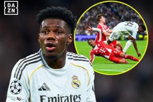 体育资讯04月08日讯 欧冠1/4决赛首回合,皇马主场1-2不敌拜仁,琼阿梅尼第36分钟绊倒奥利塞、撞翻基米希,吃到黄牌次回合停赛。